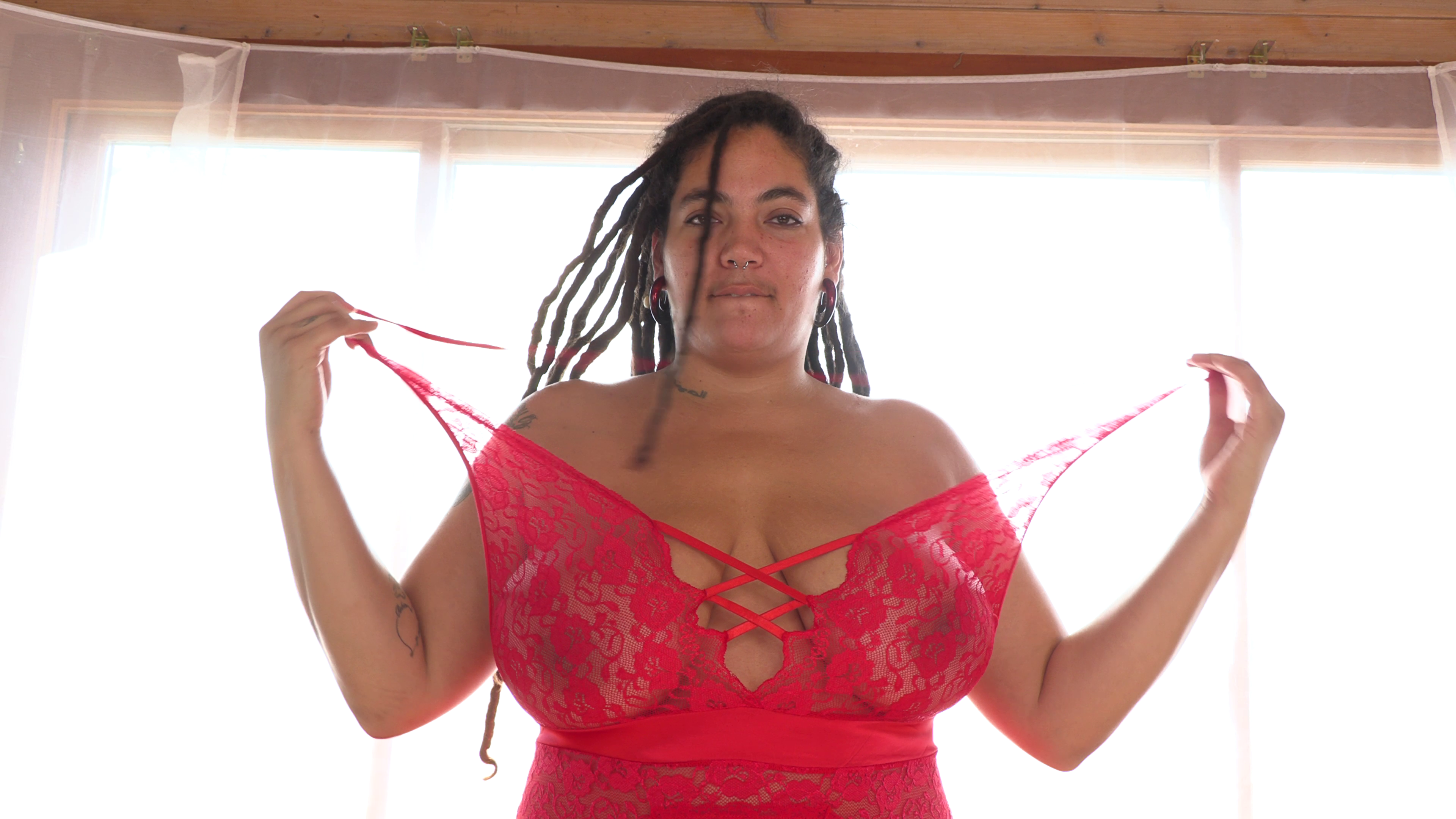 I got Felix dressed up in this vintage one piece with sheer thigh highs and heels. She primps in the bathroom before brushing our her dark armpit hair with a comb, as well as her super thick bush! Then she slowly takes off her super cute, pin up outfit and get in the shower for some soapy, all natural, shower time and peeing!