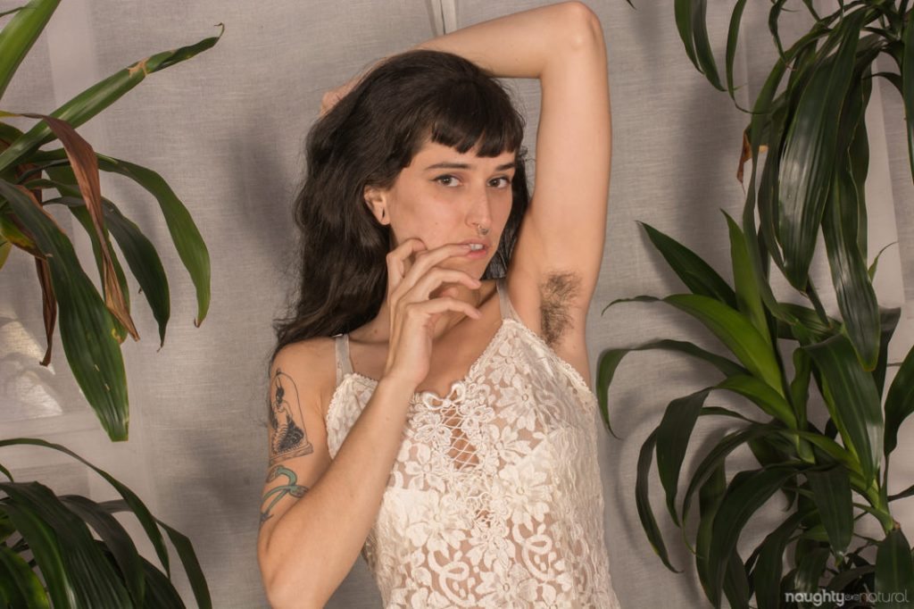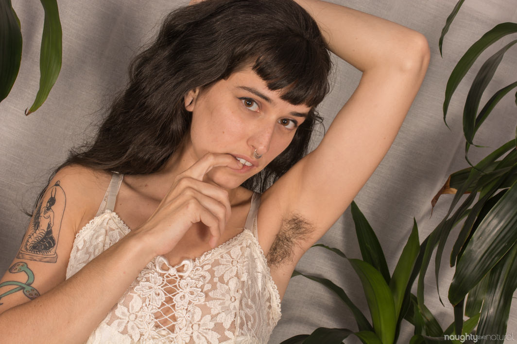 Bella strips and shows off her amazing, thick dark body hair before laying back and making her gorgeous hairy pussy cum.